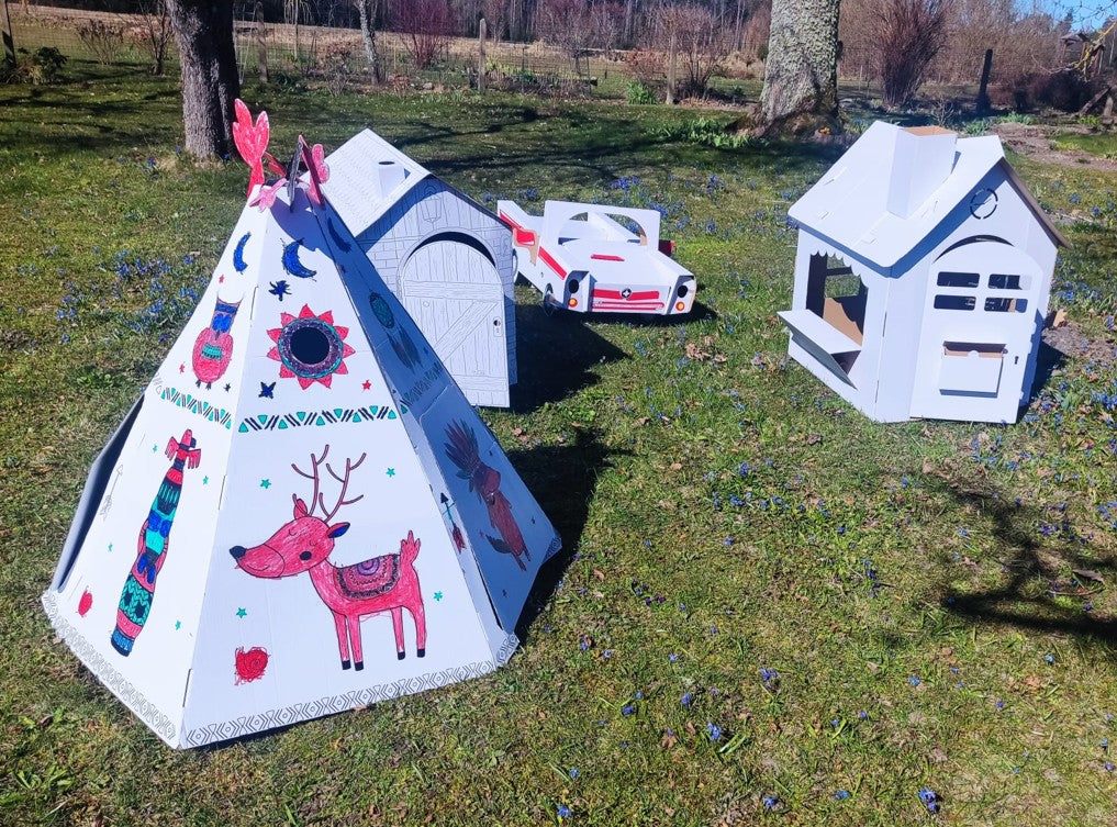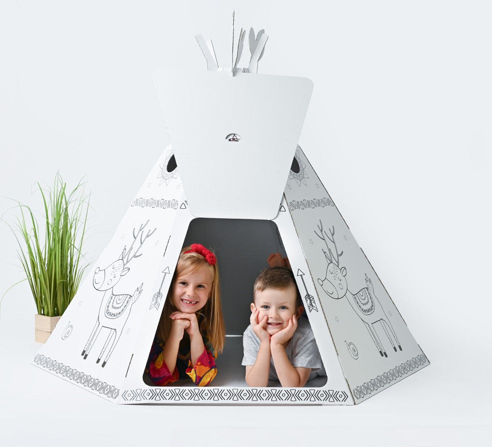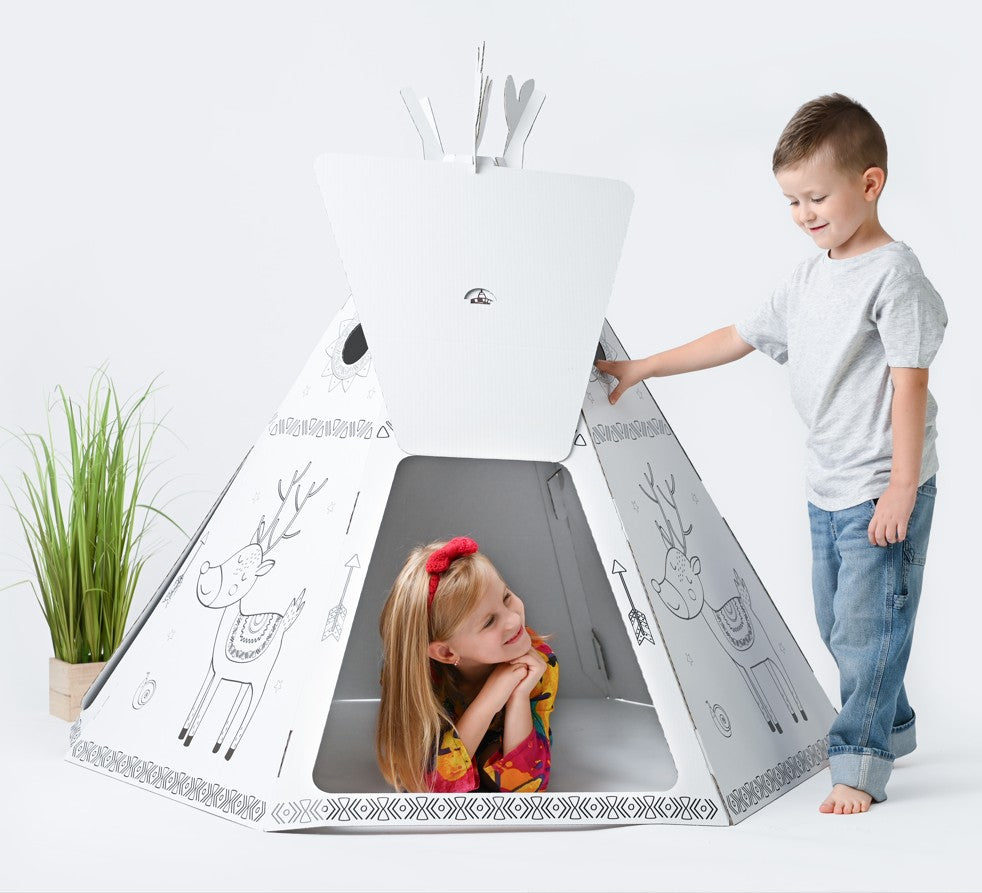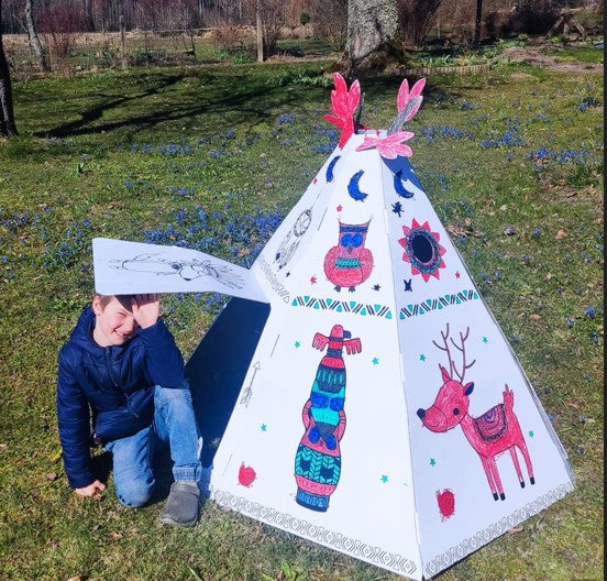 Saliekama kartona spēļu māja bērniem, Vigvams Telts, DIY, izkrāsošanai, 3+
